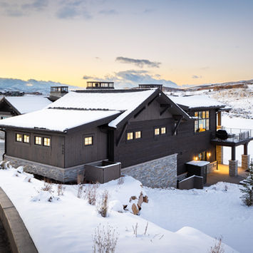 Set against the expansive backdrop of Utah’s Wasatch Range. The architecture blends contemporary mountain forms with regional materials. Vast sections of glass invite the landscape into the home. The gently sloping roofline and dynamic window compositions create a harmonious dialogue between the structure and its setting.